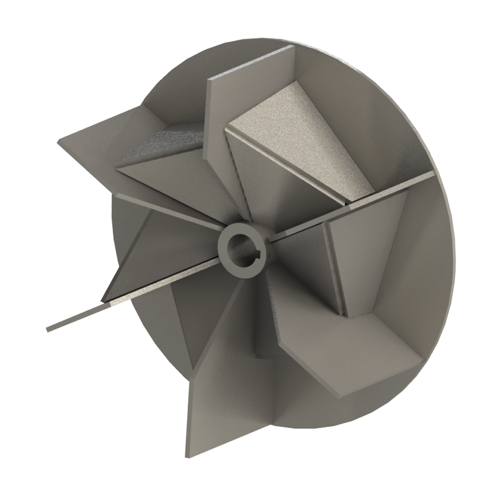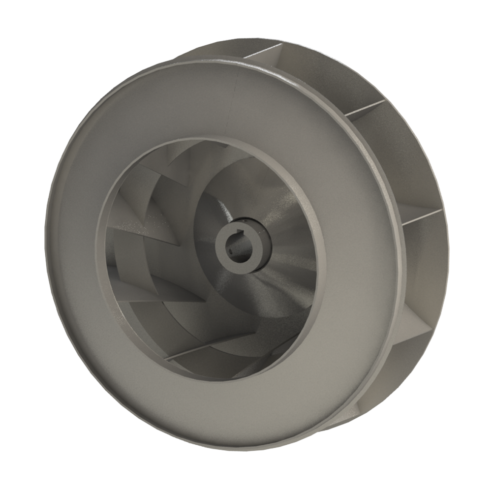Backward Incline fan wheels have flat, backwardly inclined, single thickness blades. Non-overloading high efficiency design generates low to moderate pressures.